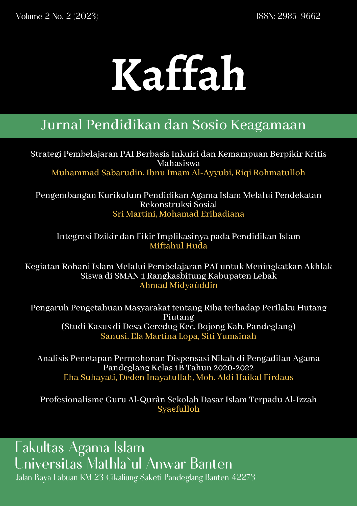 KAFFAH: Jurnal Pendidikan dan Sosio Keagamaan is licensed under a Creative Commons Attribution 4.0 International License.